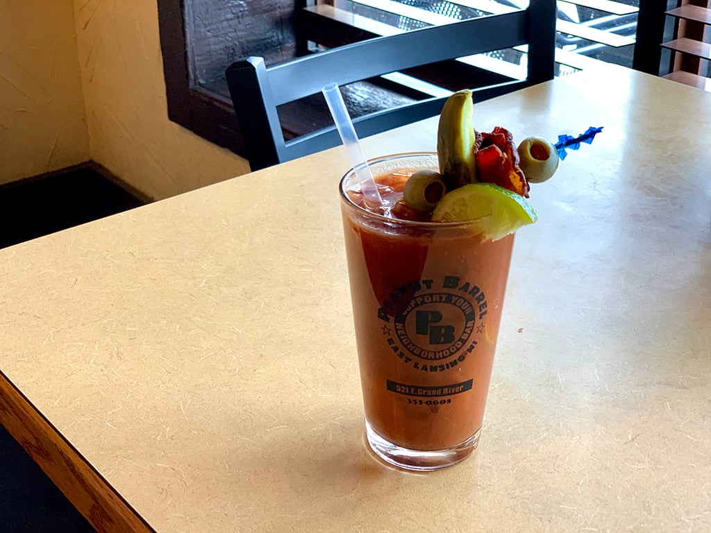 New Amsterdam Heat Check Vodka, spicy bloody mix, garnished with bacon, pickle olives and limes.